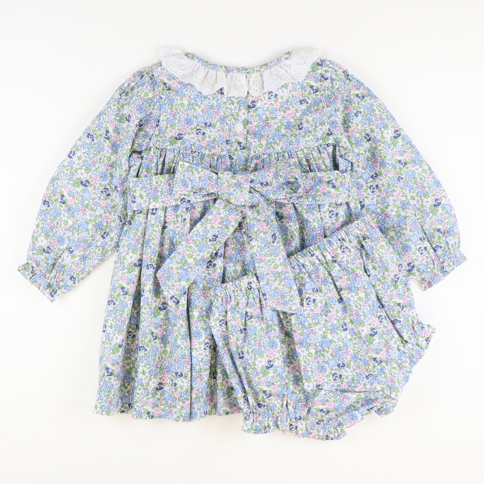 Eyelet Ruffle Neck Set - Pink & Blue Floral