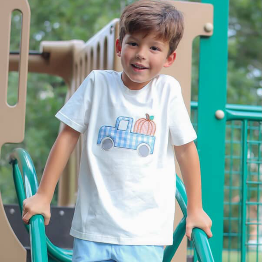 Pumpkin & Truck Appliqué Shirt - White Knit